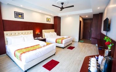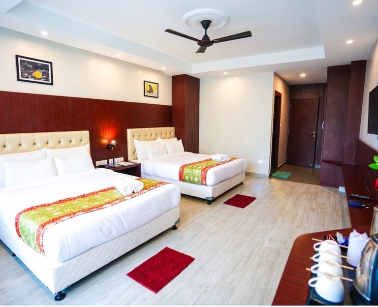 A spacious family retreat at Amor Gangtok Resort & Spa, complete with a private balcony overlooking the river and surrounding greenery where comfort meets tranquility.