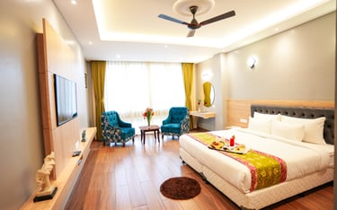 Indulge in elevated comfort at Amor Gangtok Resort & Spa with our Executive Room featuring a private balcony overlooking the river and lush jungle landscape. Spacious and thoughtfully designed, it offers the perfect blend of style, serenity, and modern amenities.